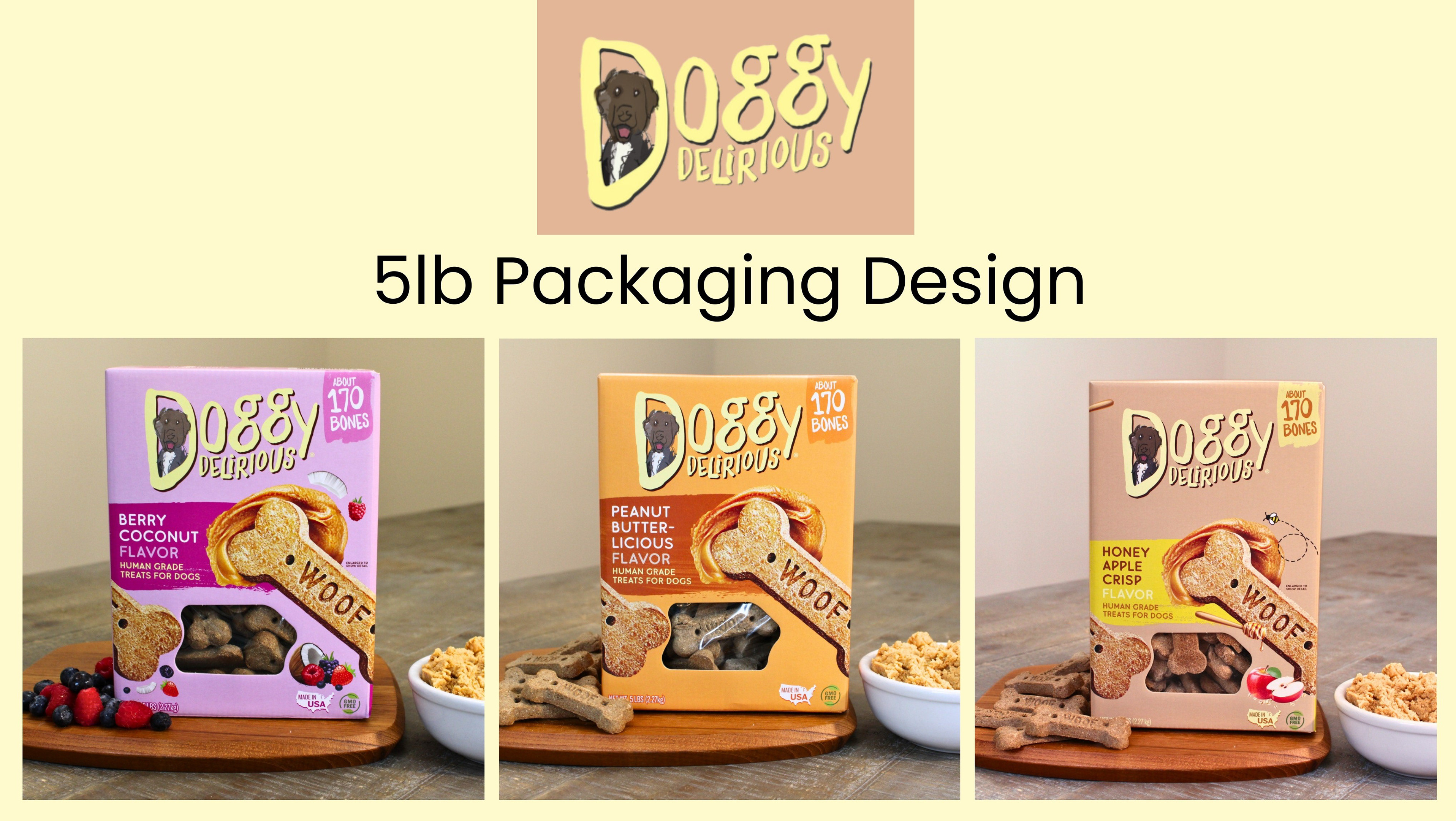Doggy Delirious Crunchy Dog Treats 5 lbs. Packaging