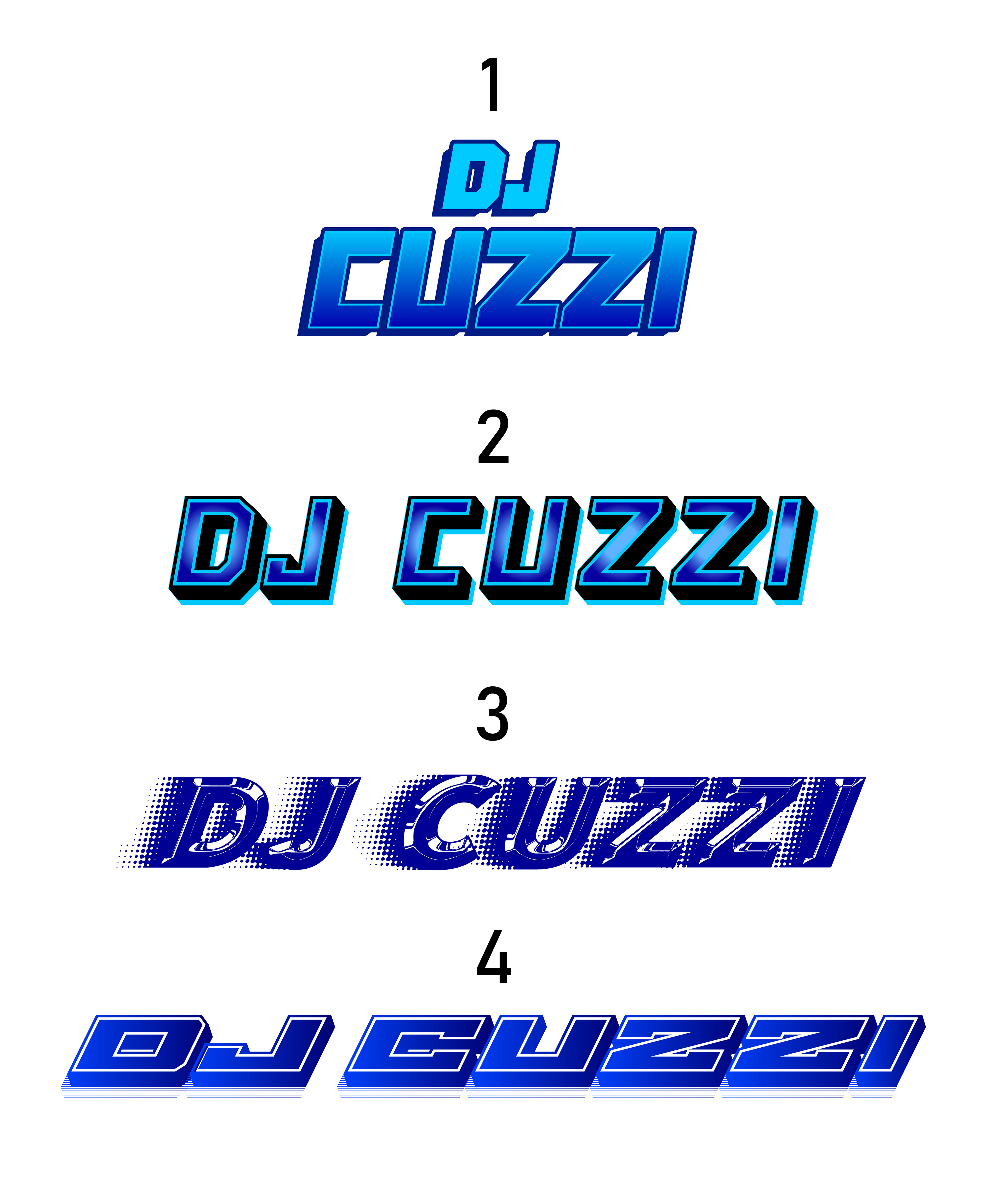 These early directions allowed us to see how different styles, depth, and lettering treatments could represent the DJ Cuzzi name. Concept 1 stood out right away and resonated the most with him. From there, I refined and expanded on that direction by enhancing the 3D effect, adjusting the gradients, and strengthening the overall wordmark until we landed on the final logo that captured exactly the look and energy he wanted.
