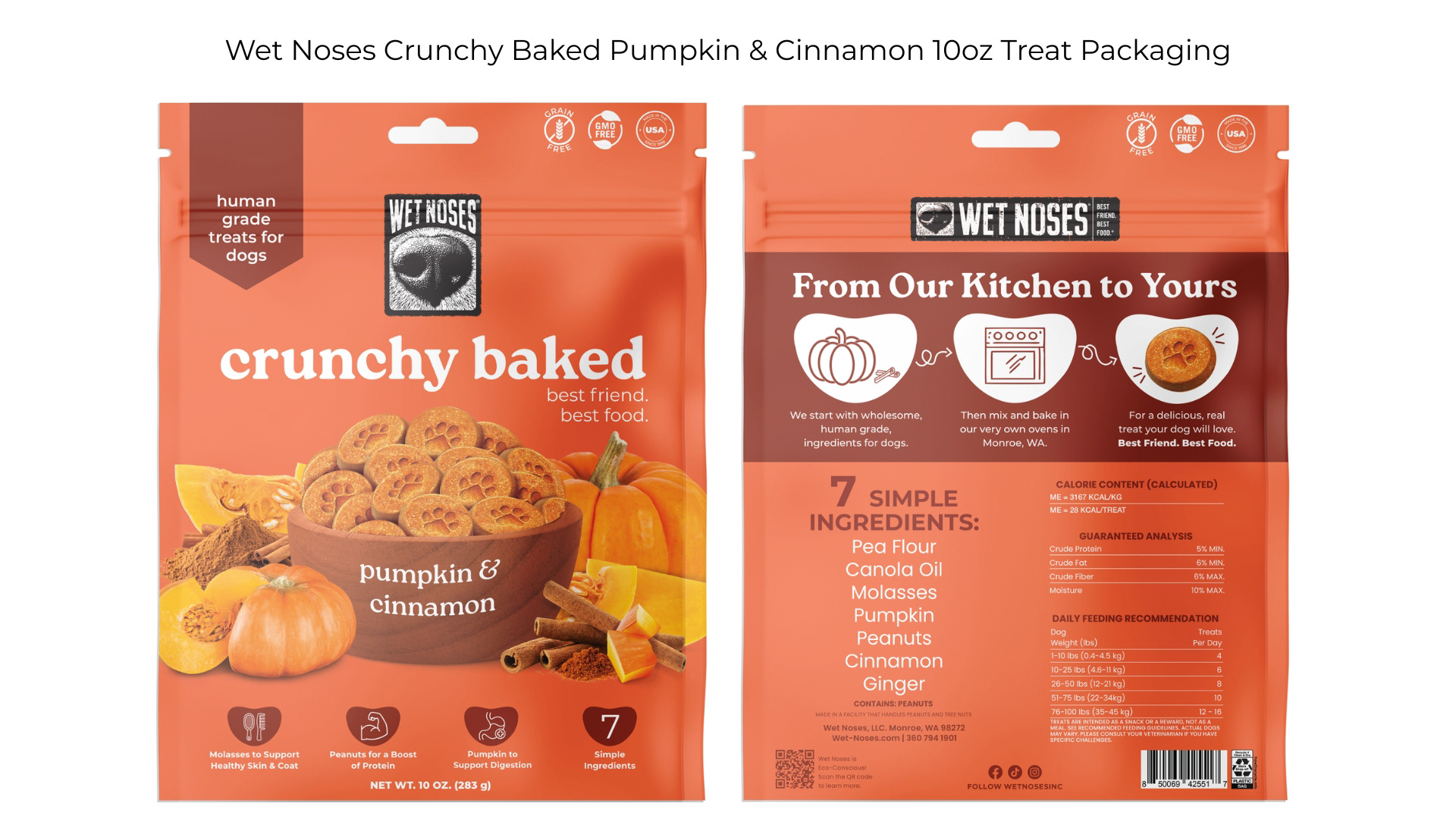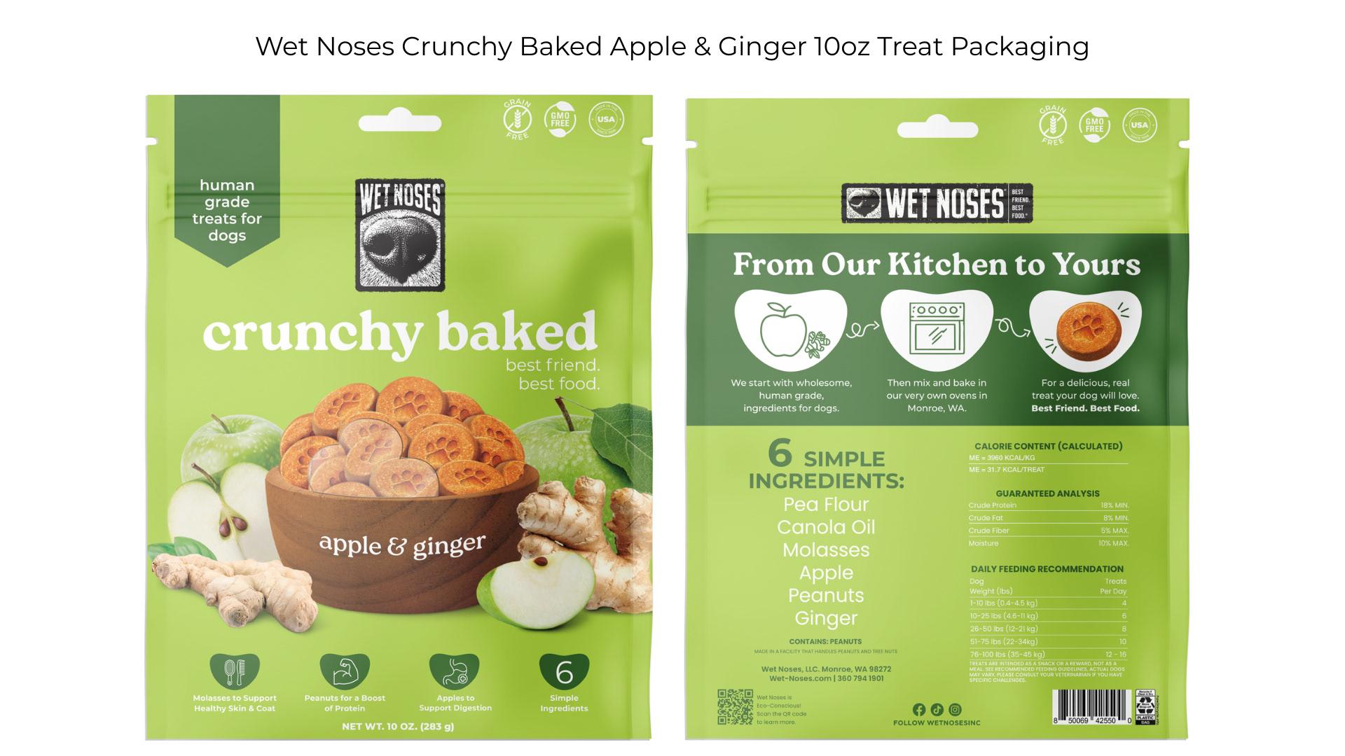 I designed packaging for the 3 new flavors for the Wet Noses Crunchy Baked Treats line. The first two flavors performed so well that we expanded the collection, and I created the full packaging design for the new additions.