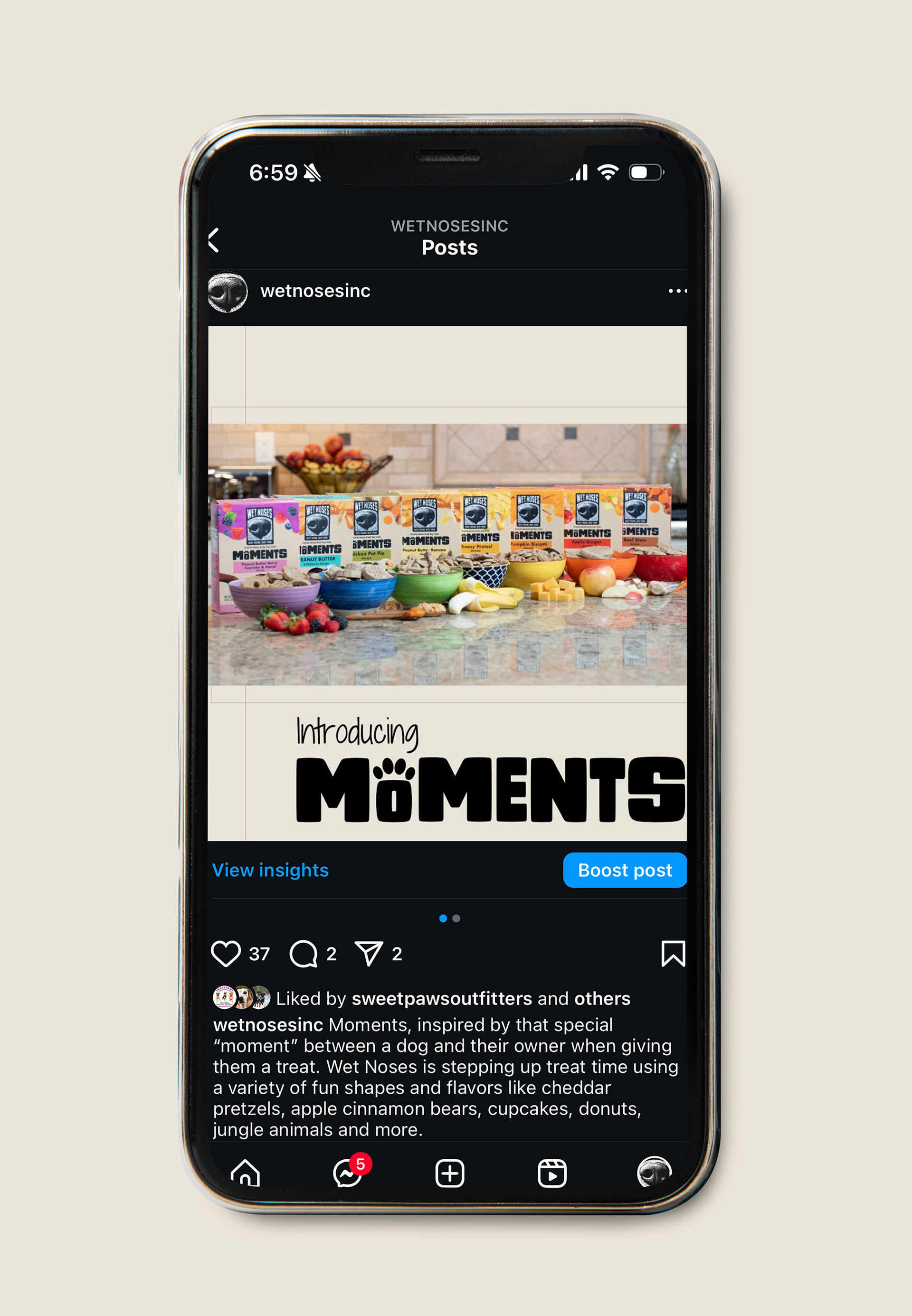 Here is the social media post I created to launch Wet Noses Moments. In the caption, I crafted a compelling message that explained the purpose of Wet Noses Moments.